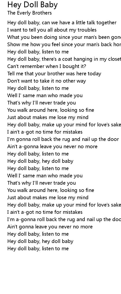 Hey doll baby, hey doll baby |