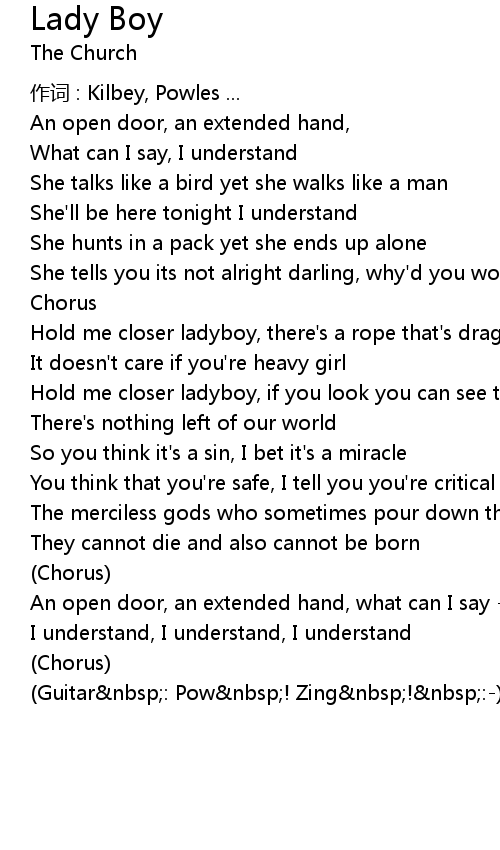 | Hold me closer ladyboy, if you look you can see that it' s just you and me | |