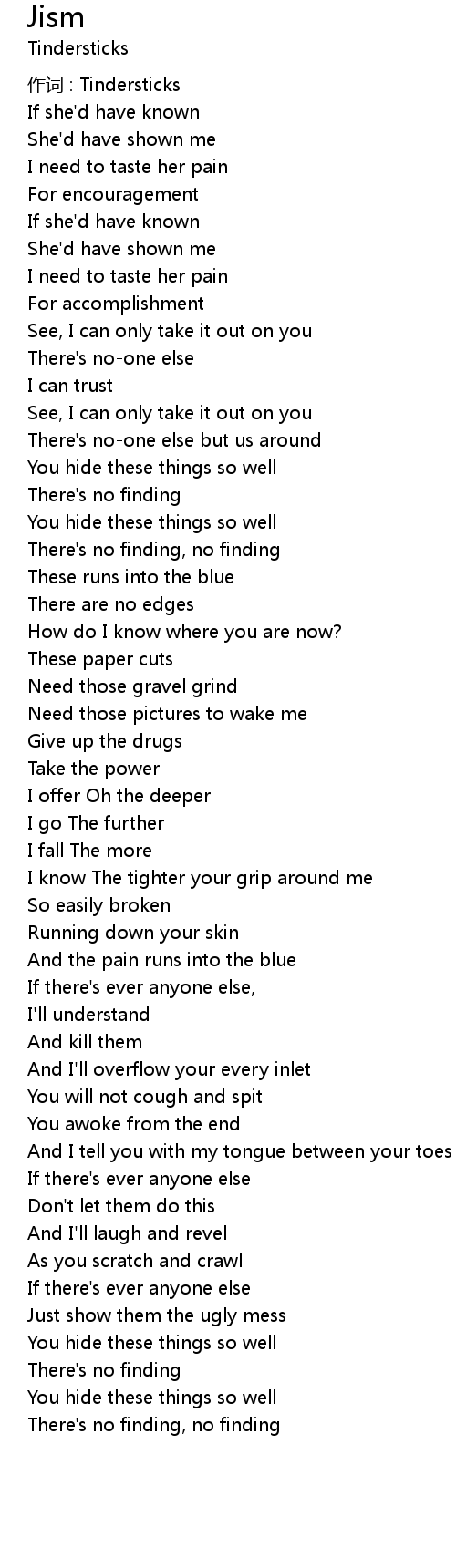 | 作词 : Tindersticks | |