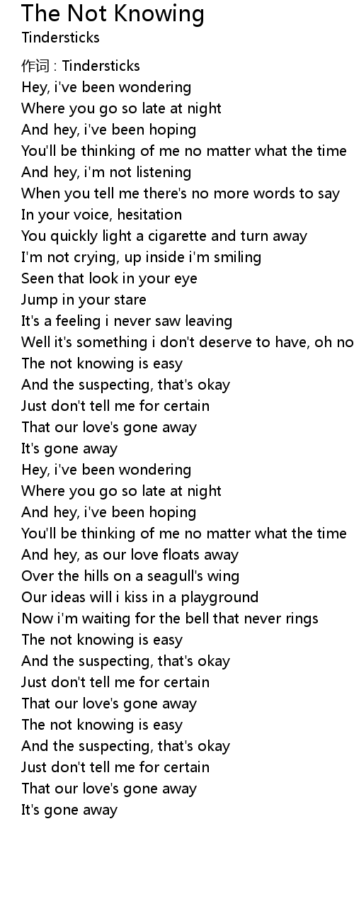 | 歌曲 | The Not Knowing |