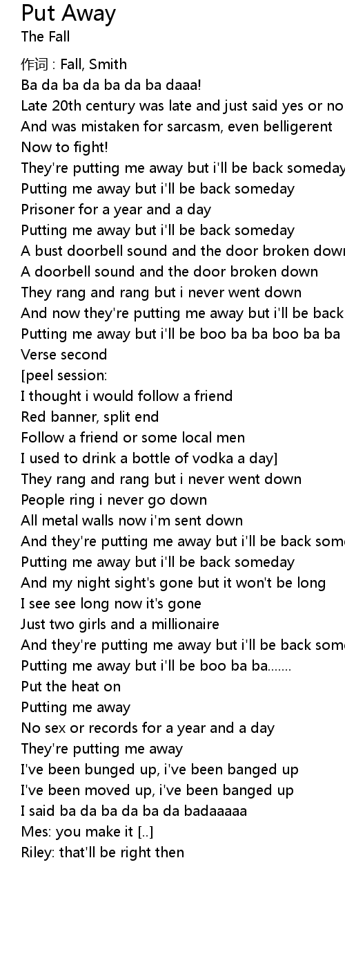 | Putting me away but i'll be boo ba ba boo ba ba bow.. | |