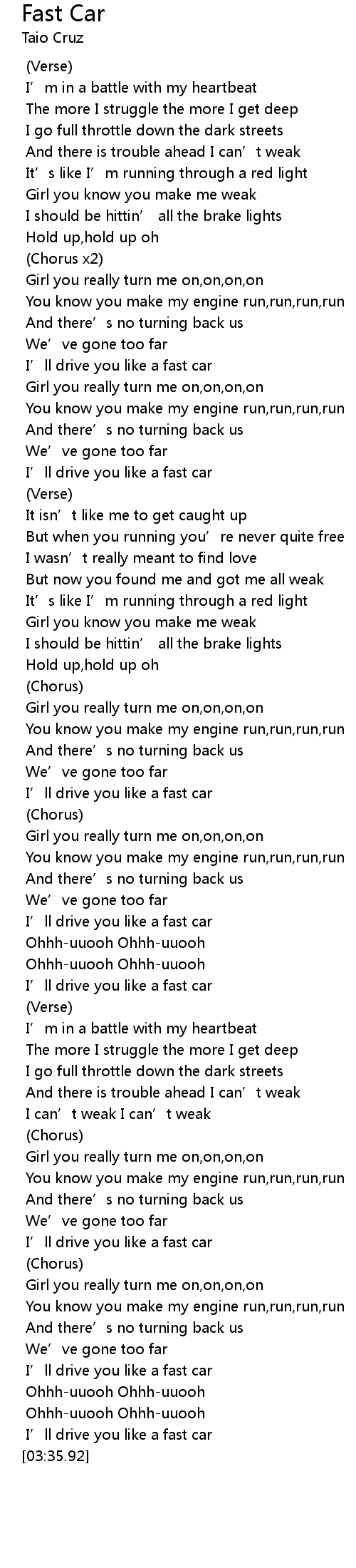 | [03:34.22] | I’ll drive you like a fast car |