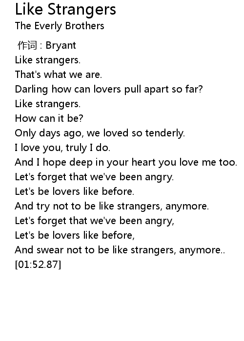 | [01:20.67] | And try not to be like strangers, anymore. |