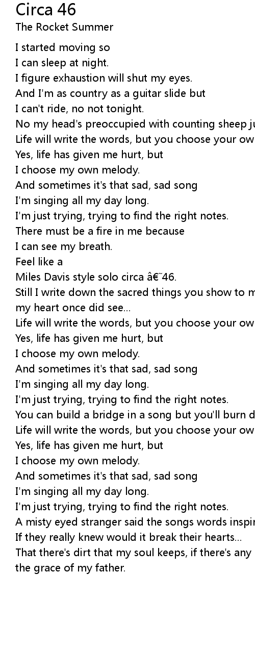 | You can build a bridge in a song but you'll burn down the ones in your life. | |