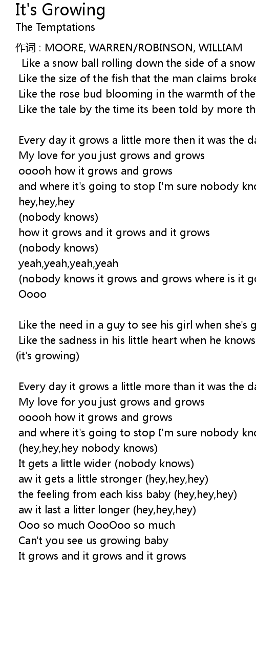 | 歌曲 | It's Growing |