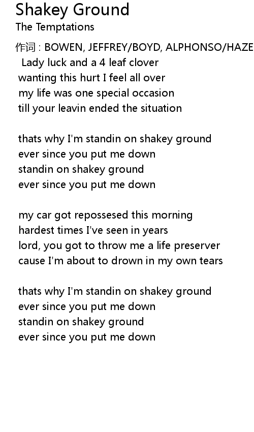 | thats why I' m standin on shakey ground | |