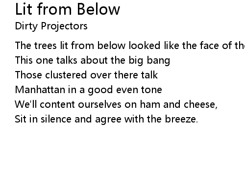 | The trees lit from below looked like the face of those telling ghost stories. | |