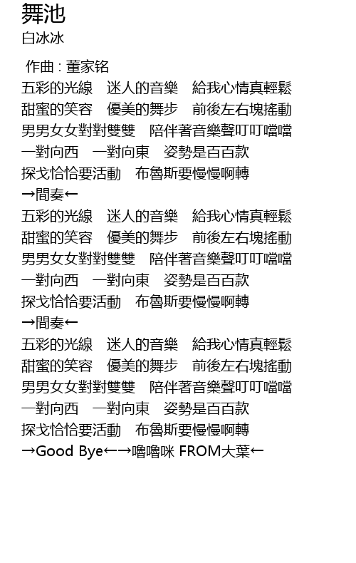 | [00:52.00] | 探戈恰恰要活動 布魯斯要慢慢啊轉 |