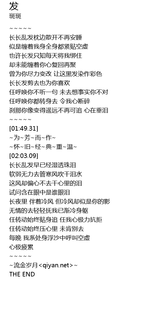 | [00:32.15] | 长长乱发枕边散开不再安睡 |