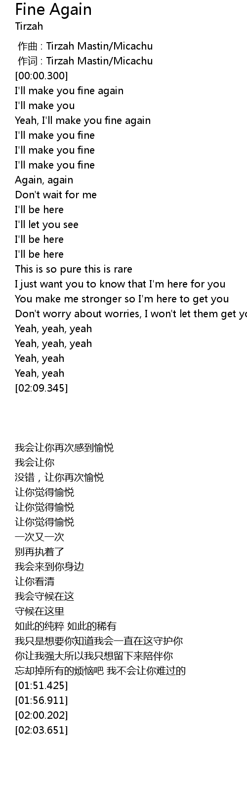 | [00:35.252] | Yeah, I' ll make you fine again |