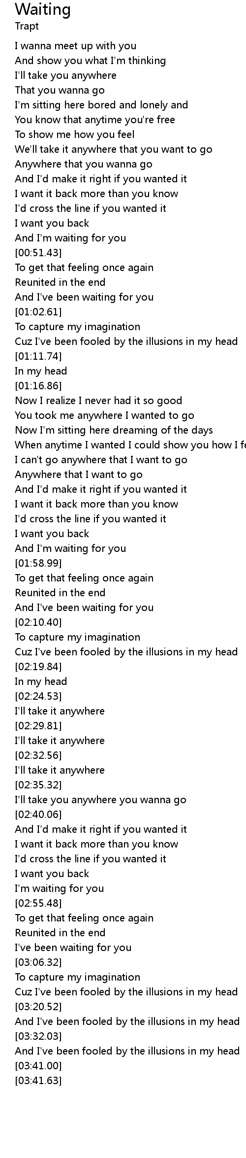 | [01:54.86] | And I'm waiting for you |