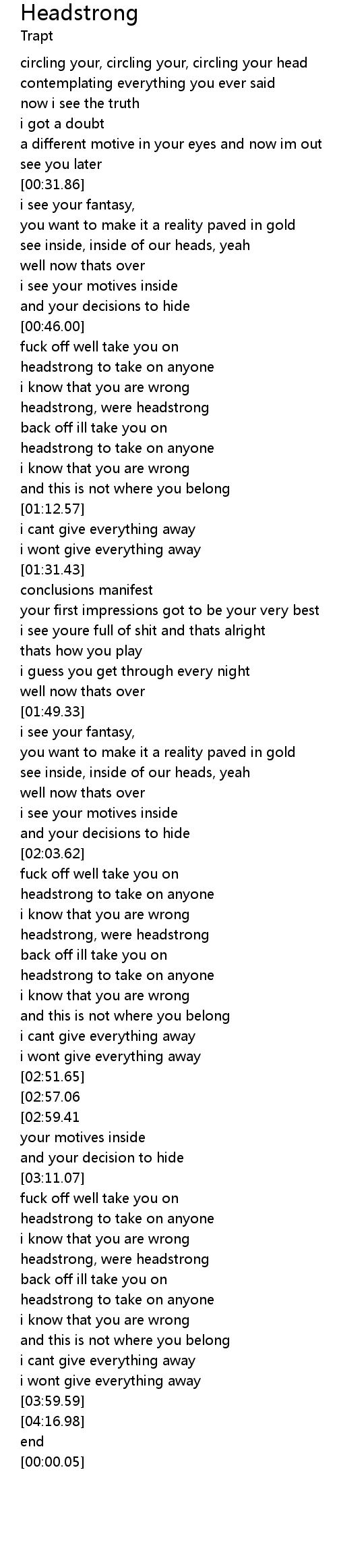 | [02:12.74] | headstrong, were headstrong |