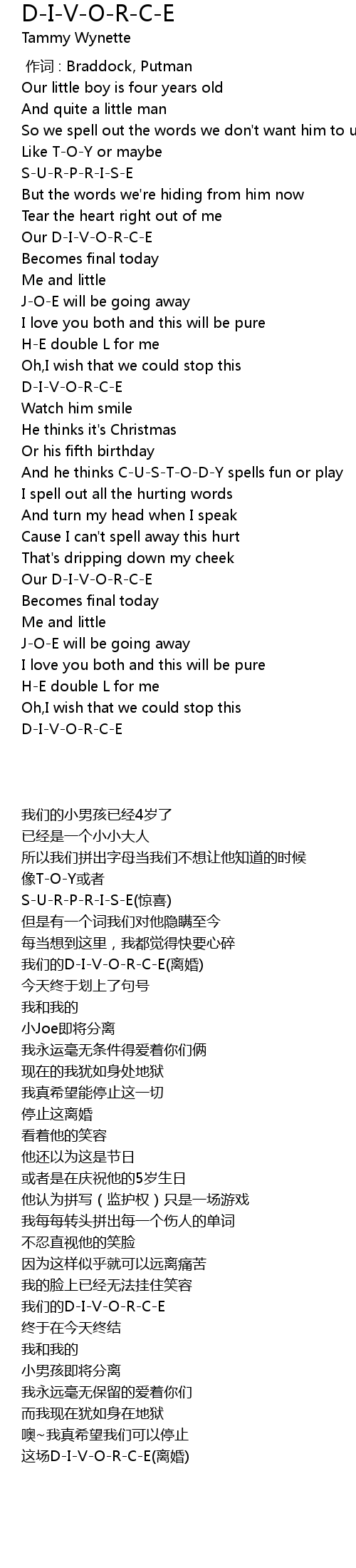 | [00:49.60] | Our D-I-V-O-R-C-E |