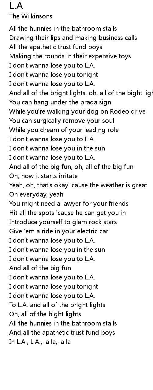 I don't wanna lose you to L.A. |