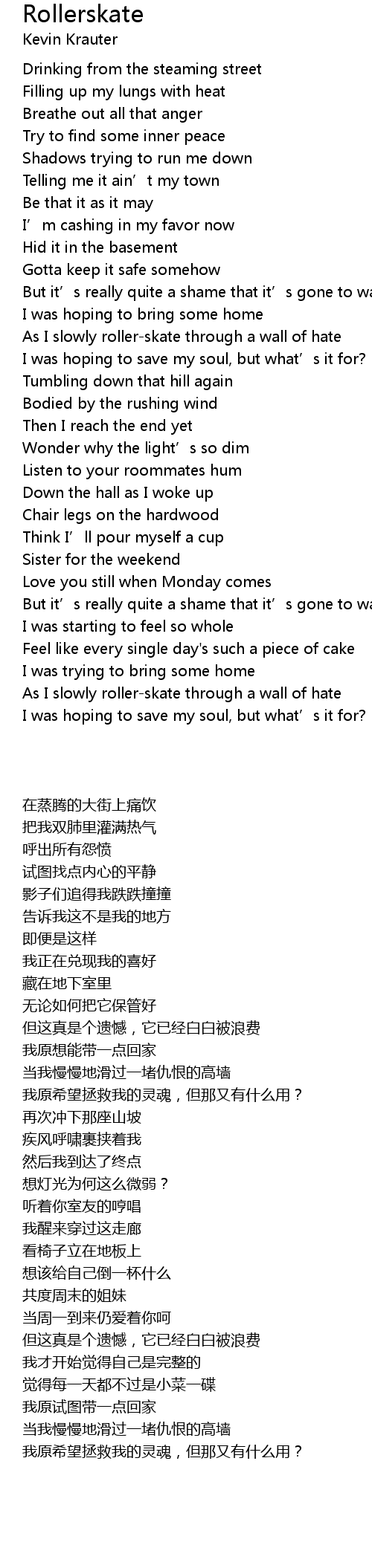 | [02:41.43] | As I slowly rollerskate through a wall of hate |