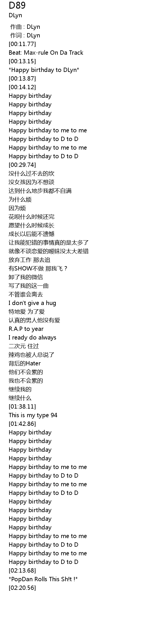 | [01:56.18] | Happy birthday to D to D |