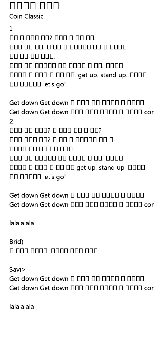 Get down Get down 인생을 즐겨봐 바로여기 이 앞줄처럼 come on~ |