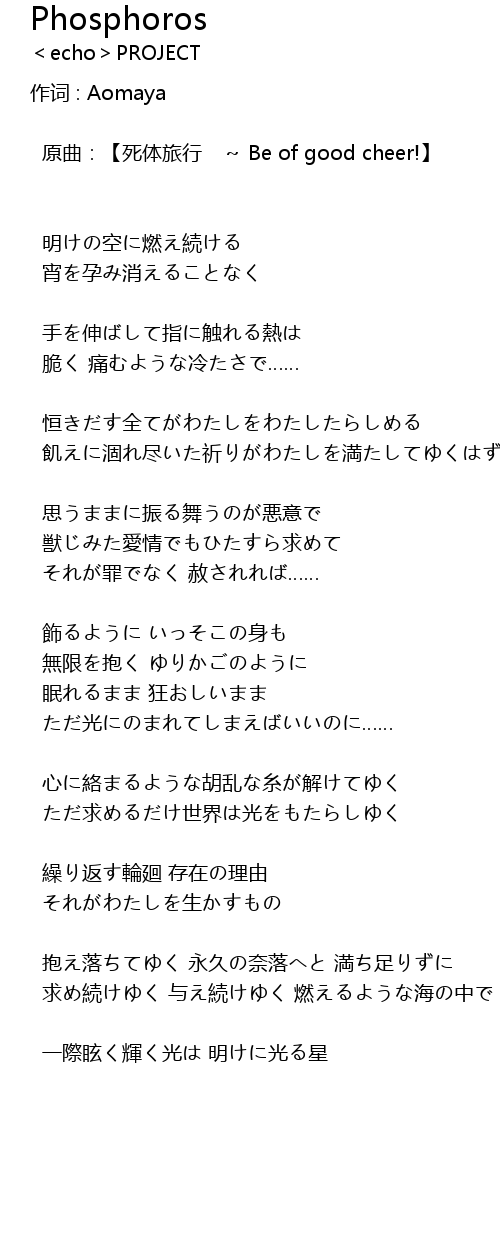 | 歌曲 | Phosphoros |