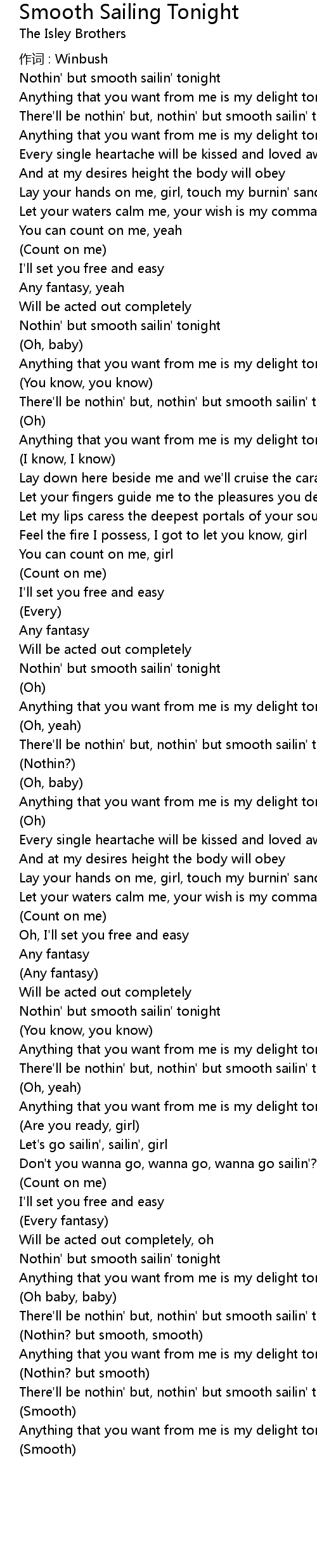 | There' ll be nothin' but, nothin' but smooth sailin' tonight | |