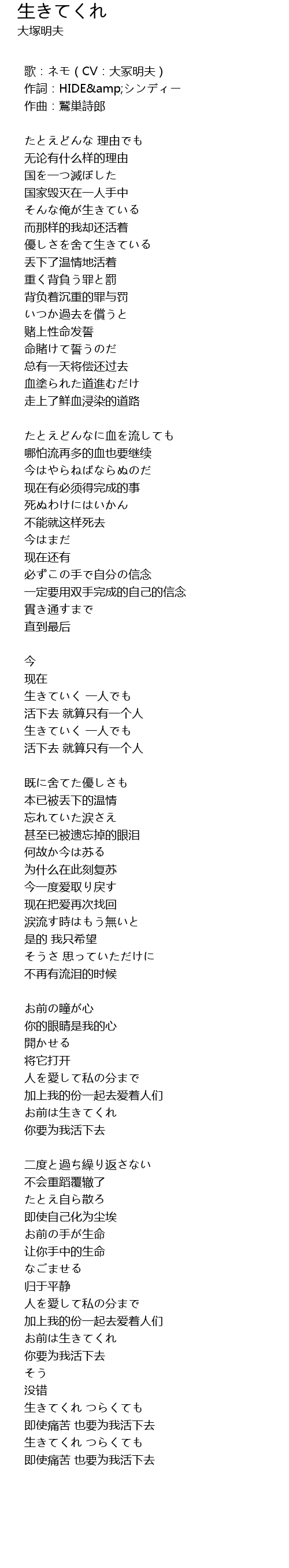 | 歌曲 | 生きてくれ |