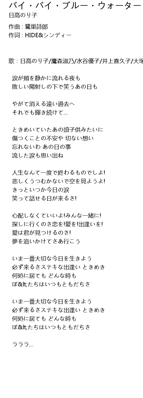 | 歌曲 | バイ・バイ・ブルー・ウォーター |