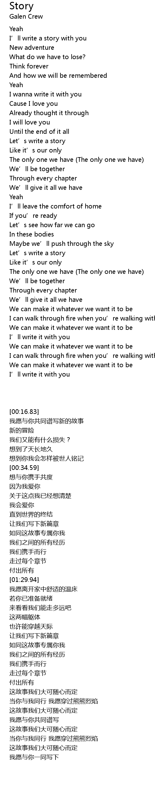 | [00:18.89] | 我愿与你共同谱写新的故事 |