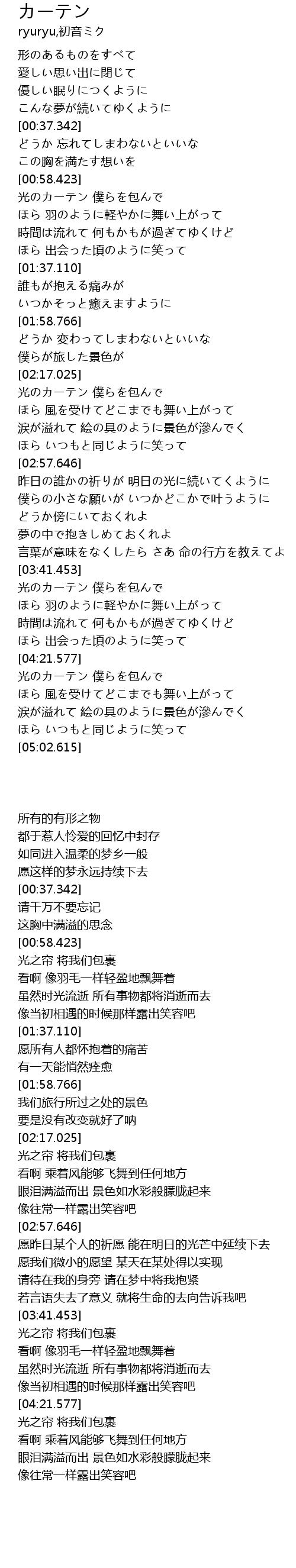 | [00:59.363] | 光のカーテン 僕らを包んで |