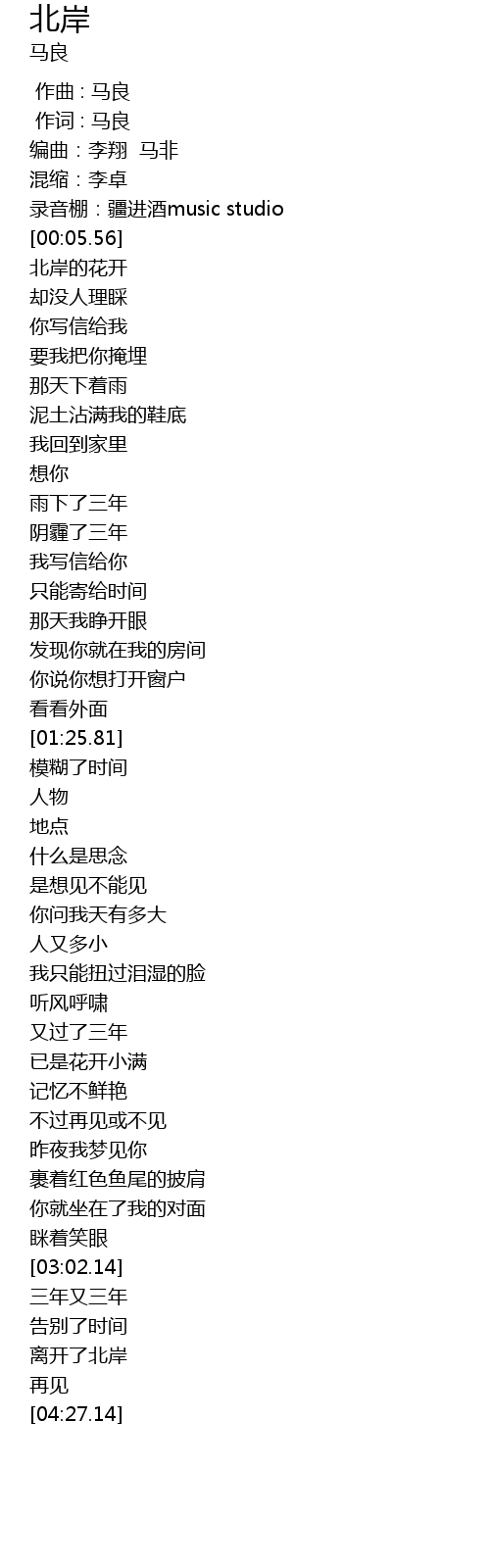 | [00:00.000] | zuò qǔ : mǎ liáng |