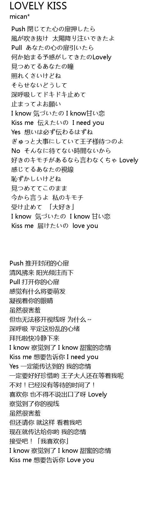 | [01:22.68] | Kiss me 伝えたいの I need you |