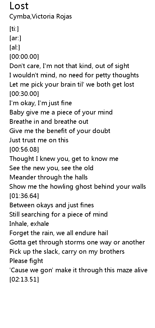 | [00:26.08] | Let me pick your brain til' we both get lost |