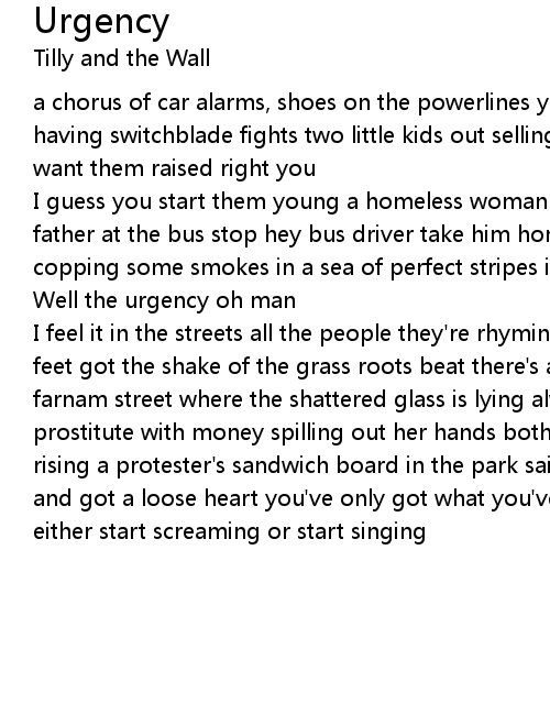 Well the urgency oh man |