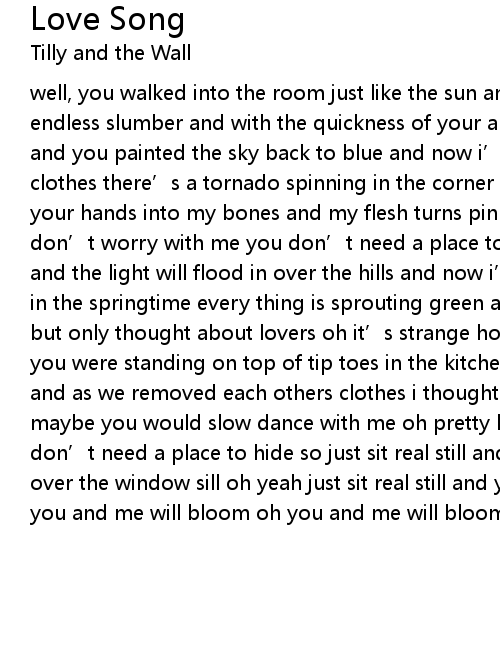 | well, you walked into the room just like the sun and woke the caveman from his endless slumber and with the quickness of your arm you pulled out a paint brush and you painted the sky back to blue and now i' m standing on top of dirty clothes there' s a tornado spinning in the corner and electricity flows from your hands into my bones and my flesh turns pink with its warmth oh pretty love don' t worry with me you don' t need a place to hide so just sit real still and the light will flood in over the hills and now i' m walking around outside in the springtime every thing is sprouting green and i watched this fight occur but only thought about lovers oh it' s strange how this world becomes pure and you were standing on top of tip toes in the kitchen as the water starts to boil and as we removed each others clothes i thought i would sing some notes so that maybe you would slow dance with me oh pretty love don' t worry with me you don' t need a place to hide so just sit real still and the light will flood in over the window sill oh yeah just sit real still and you and me will bloom oh you and me will bloom oh you and me will bloom on the windowsill |