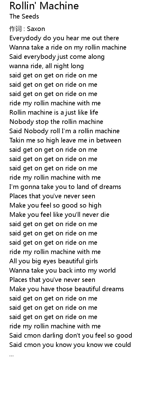 | ride my rollin machine with me | |