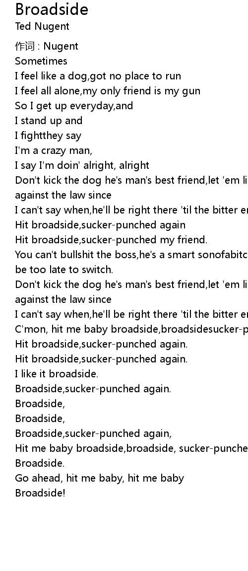 | Hit me baby broadside, broadside, suckerpunched again, | |