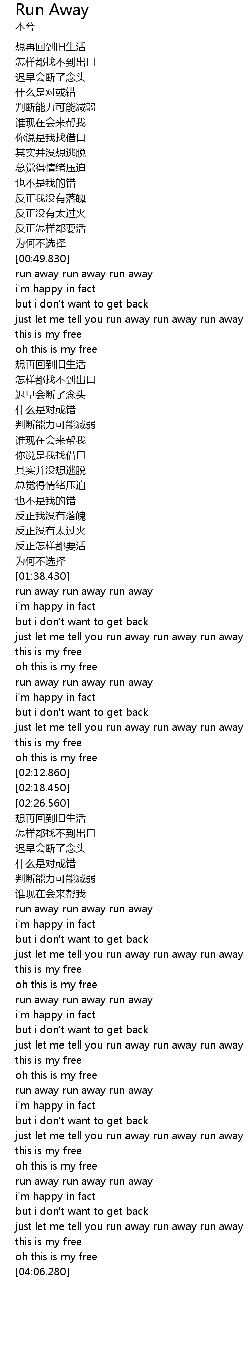 | [00:50.800] | run away run away run away |