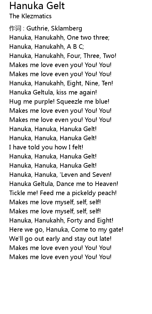 | Hanuka, Hanuka, Hanuka Gelt! | |