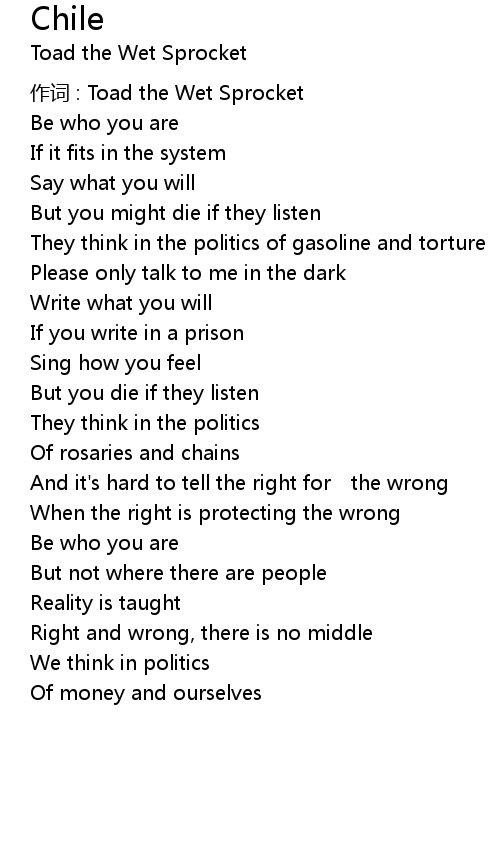 | 作词 : Toad the Wet Sprocket | |