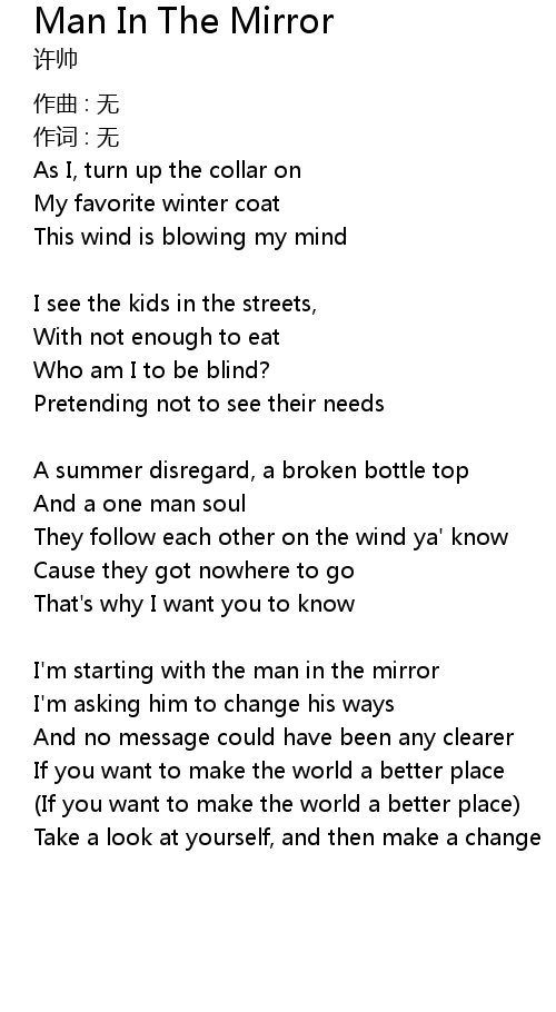 | I' m starting with the man in the mirror | |