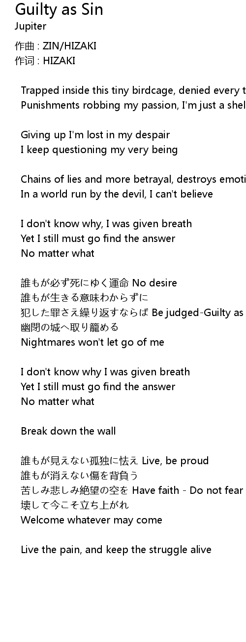 | 歌曲 | Guilty as Sin |