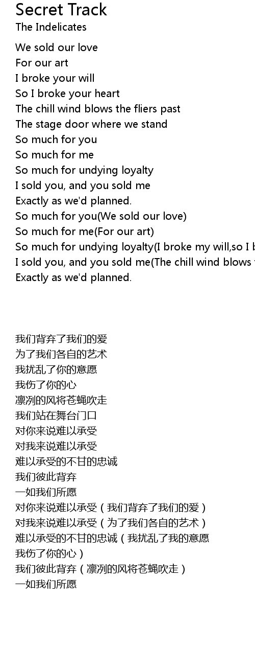 So much for undying loyalty(I broke my will,so I broke your heart) |