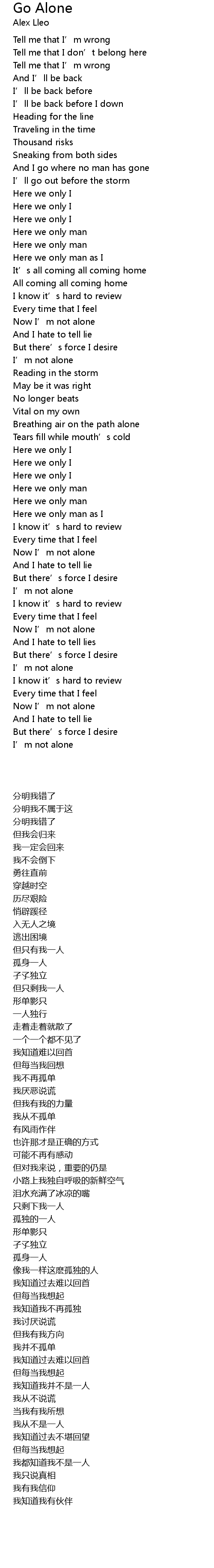 | [00:43.000] | 孤身一人 |