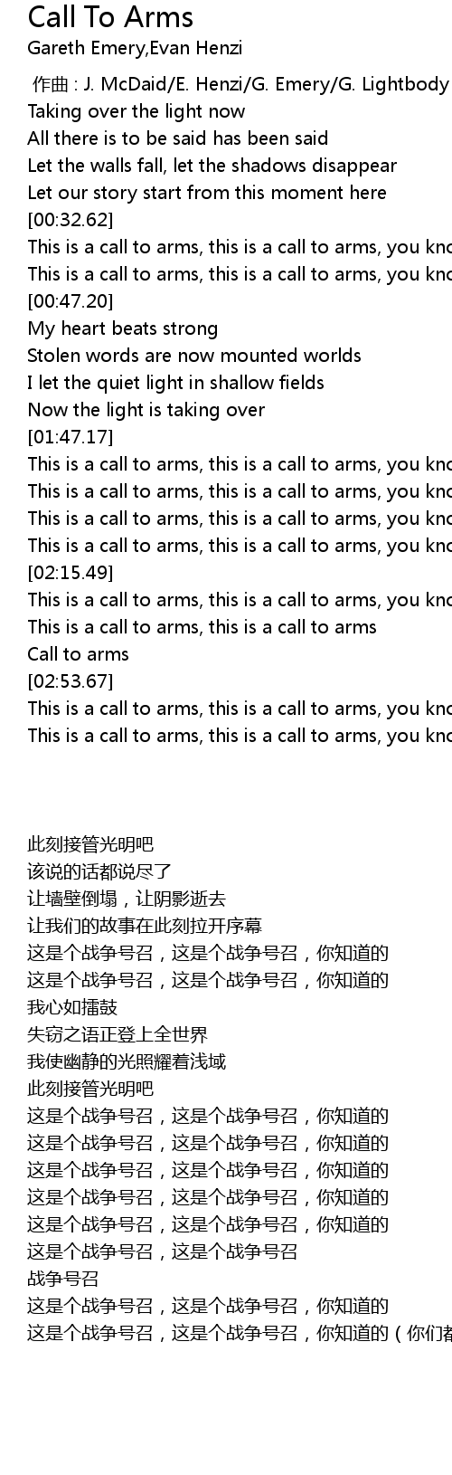 | [02:38.75] | This is a call to arms, this is a call to arms |