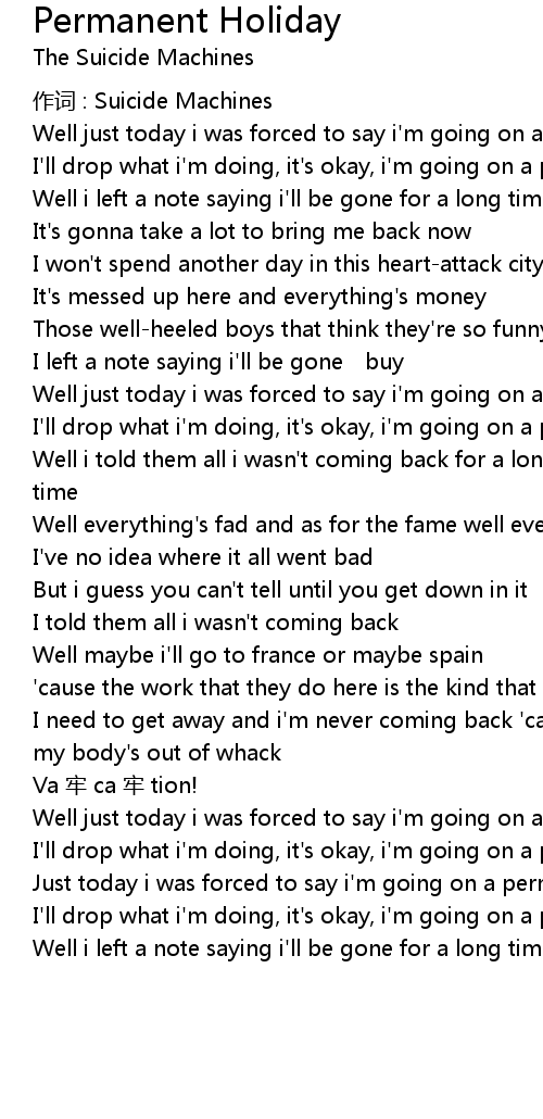 | Well just today i was forced to say i' m going on a permanent holiday | |