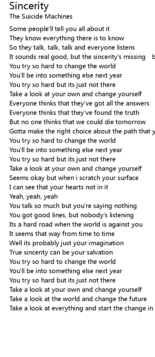| It sounds real good, but the sincerity' s missing buy | |