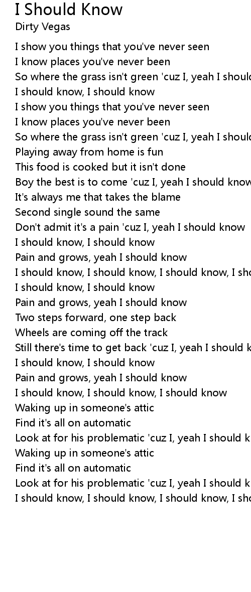 I should know, I should know, I should know, I should know |