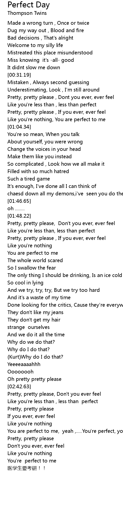 | [00:43.30] | Pretty, pretty please , Dont you ever, ever feel |