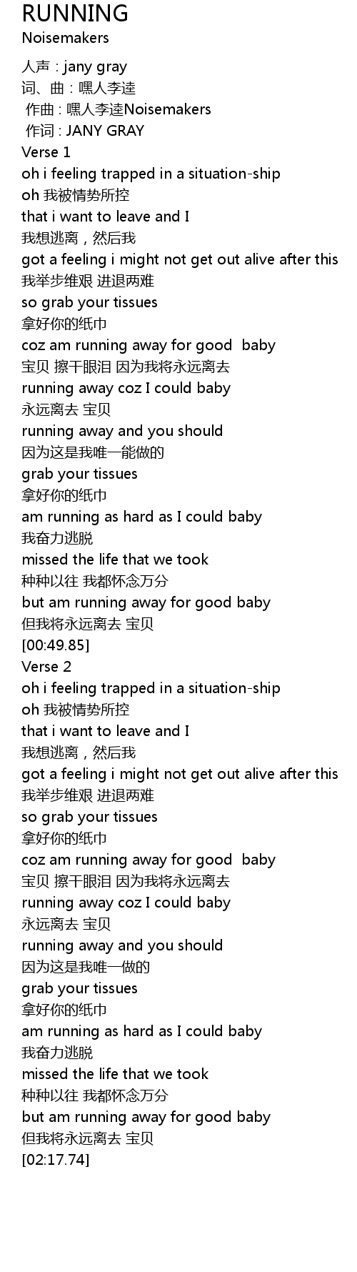 | [02:02.79] | 宝贝 擦干眼泪 因为我将永远离去 |
