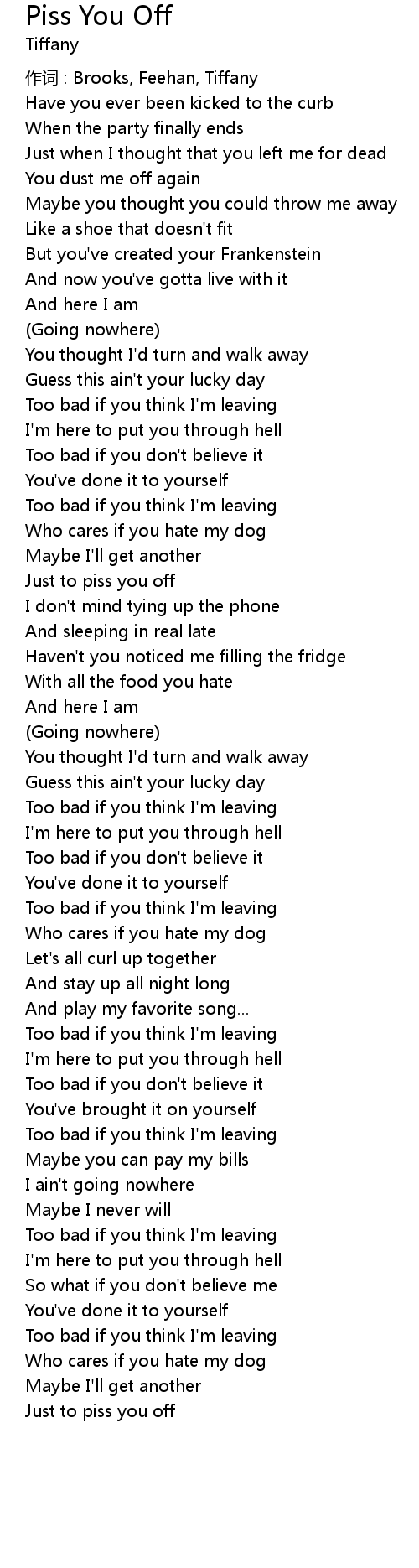 | 歌曲 | Piss You Off |