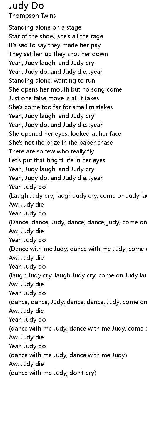 (laugh Judy cry, laugh Judy cry, come on Judy laugh yeah hah)