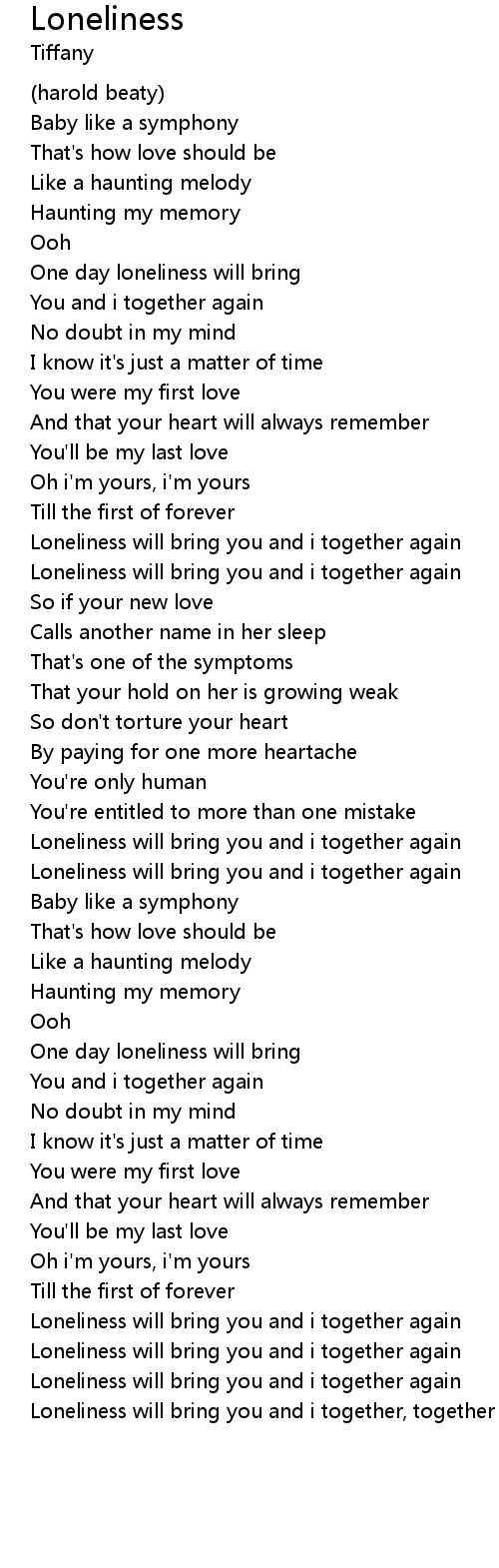 Loneliness will bring you and i together, together again
